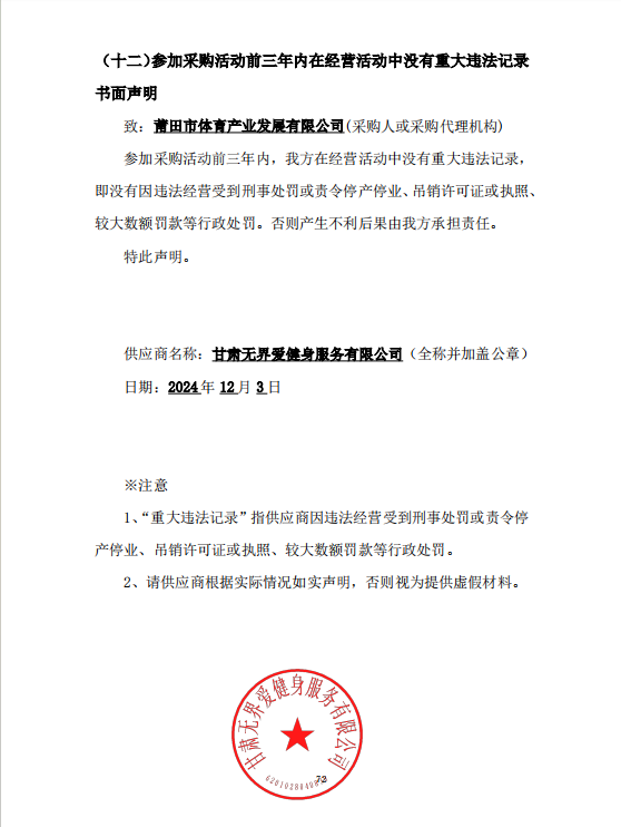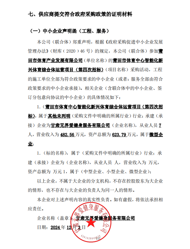 二、项目名称:莆田市体育中心智能化新兴体育综合体运营项目(第四次招标)